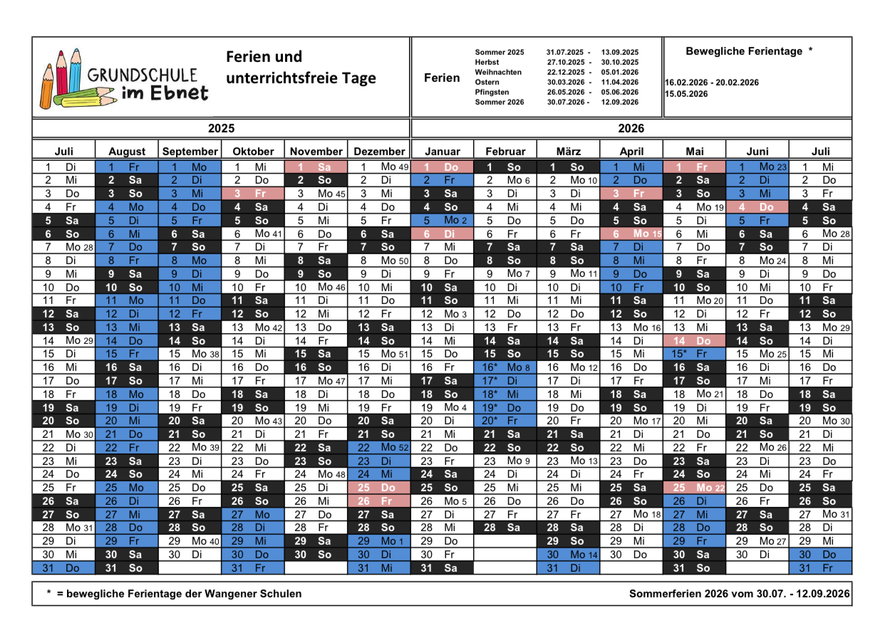 • Montag, 23.2.26 Schulbeginn nach den Fasnetsferien